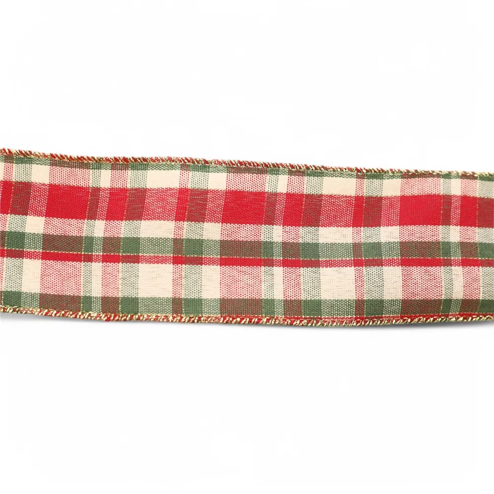 Transforme sua decoração natalina com a Fita Decorativa de Natal Xadrez Vermelho e Verde 3,8cm x 4,57m.