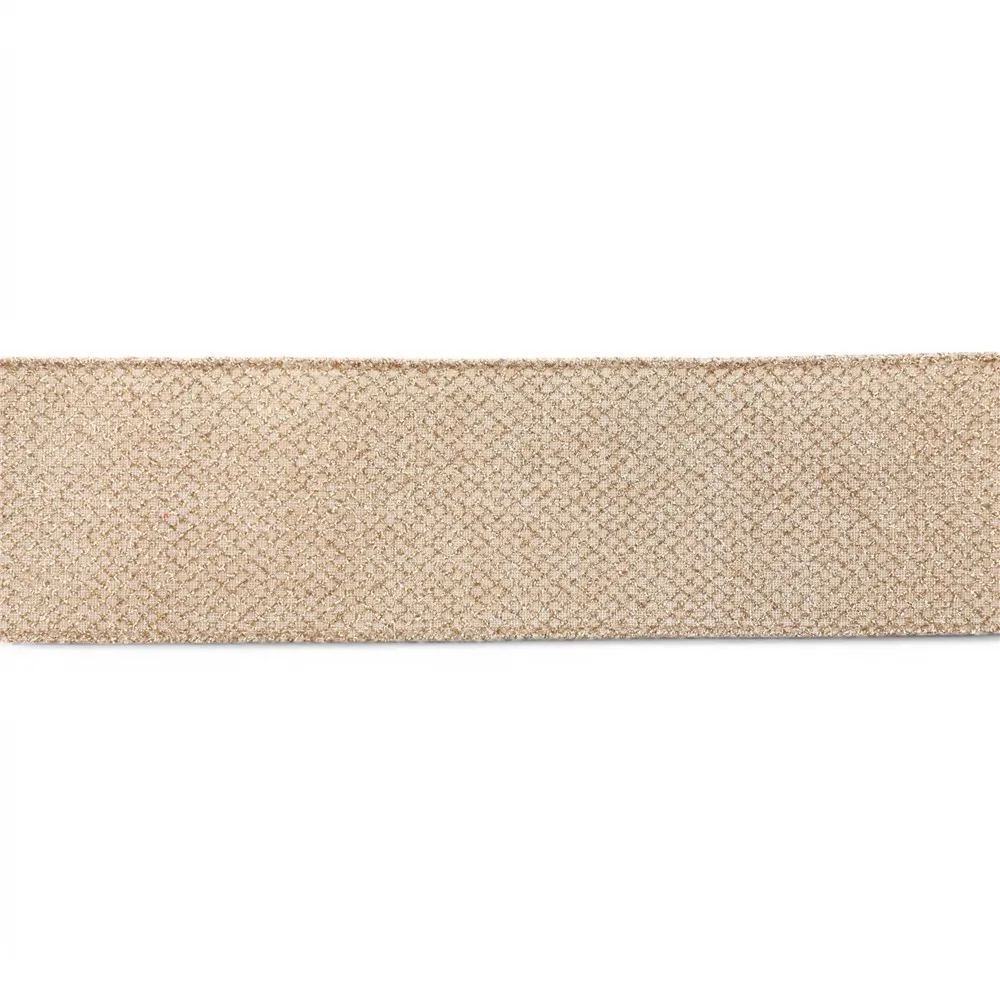 Transforme sua decoração de Natal em um verdadeiro espetáculo de sofisticação com a Fita Natalina Nude Glitter Ouro Linhas Cruzadas 6,3CM x 4,57M.