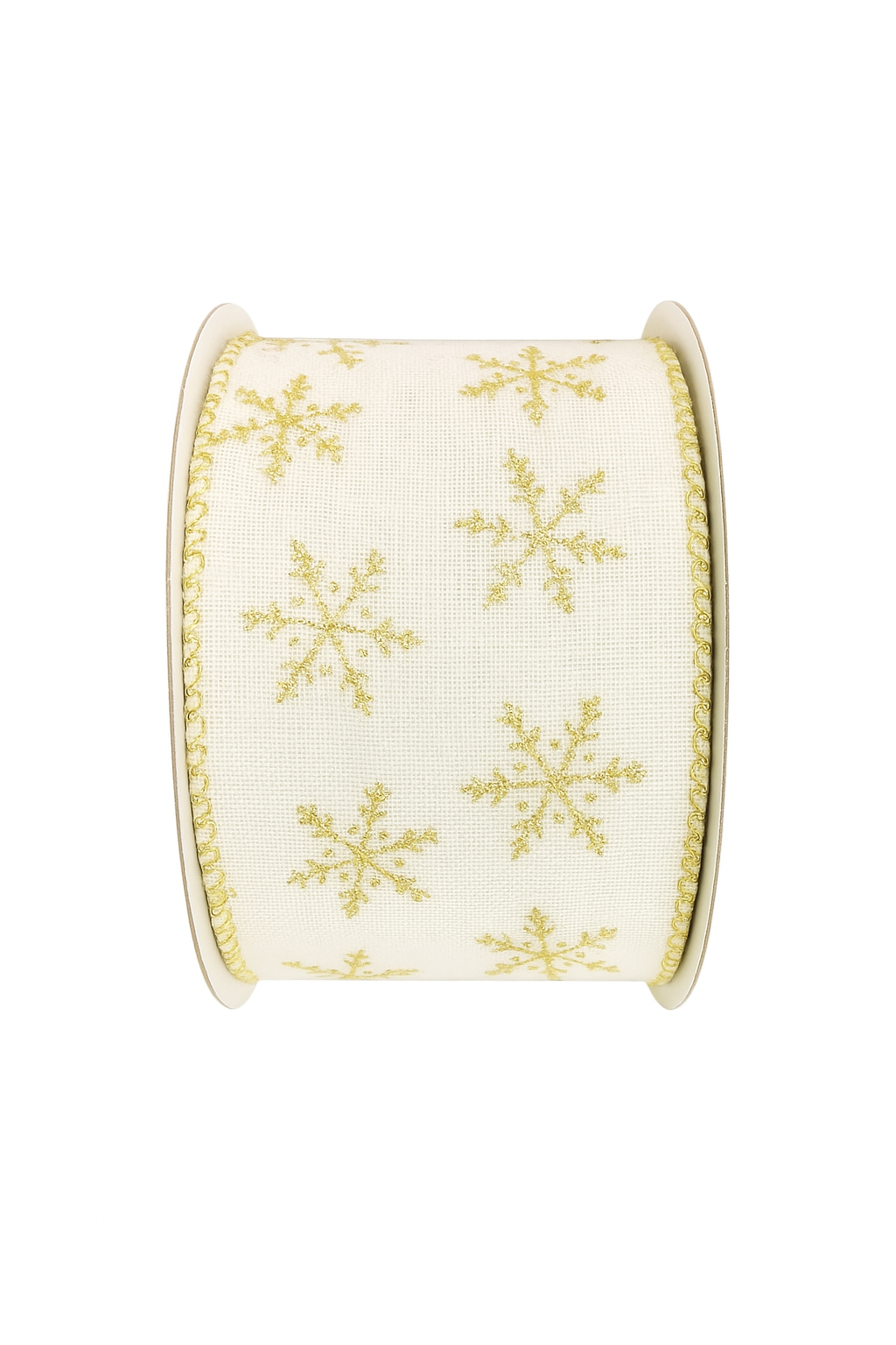 Encante sua decoração de Natal com a Fita Natalina Ouro/Branco Flocos de Neve 6,3CM x 4,57M.