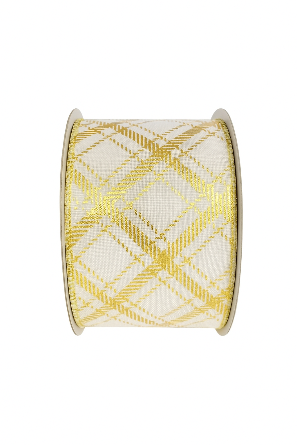Transforme sua decoração de fim de ano com a Fita Natalina Ouro/Branco Listras Losango 6,3cm x 4,57m.
