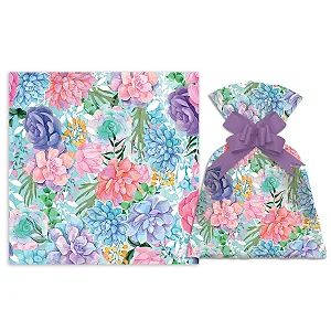Seu acabamento brilhante com estampa delicada de primavera valoriza o presente e encanta quem recebe.